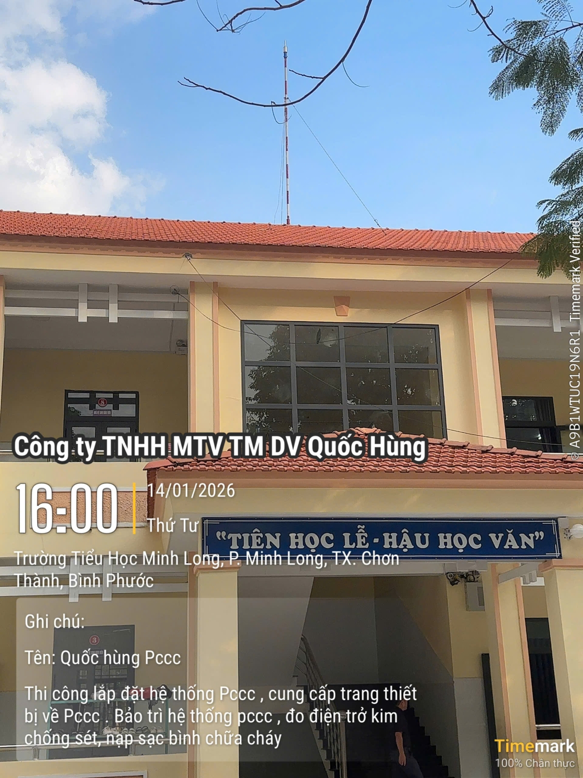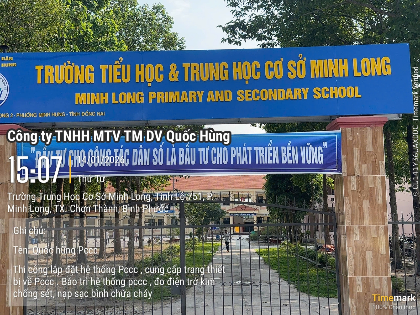 Dự án thi công hệ thống phòng cháy chữa cháy (PCCC) tại Trường Tiểu học và Trung học cơ sở Minh Long là công trình tiêu biểu trong lĩnh vực PCCC Bình Phước, góp phần đảm bảo an toàn phòng cháy cho môi trường giáo dục, nơi tập trung đông học sinh và cán bộ giáo viên.