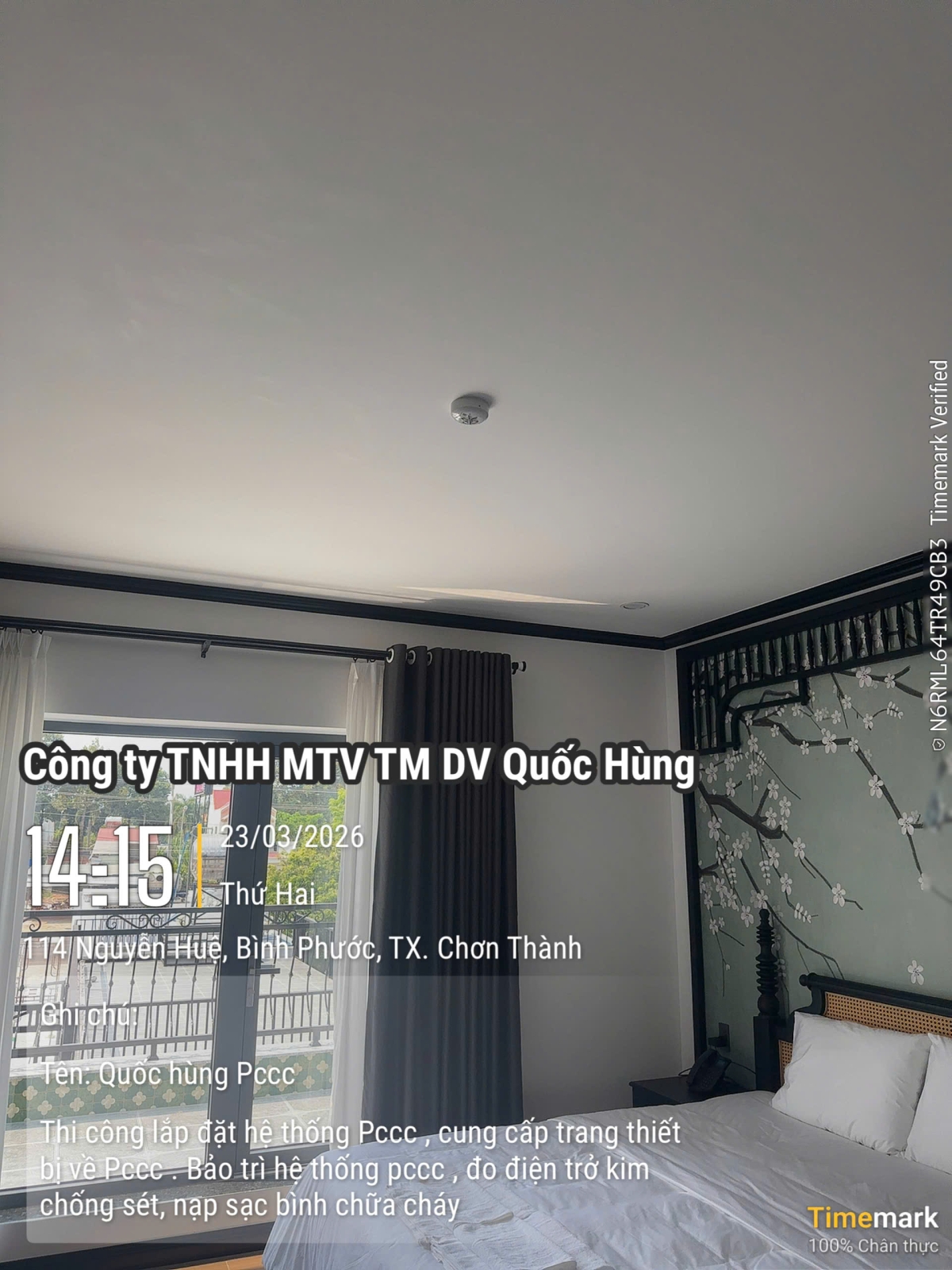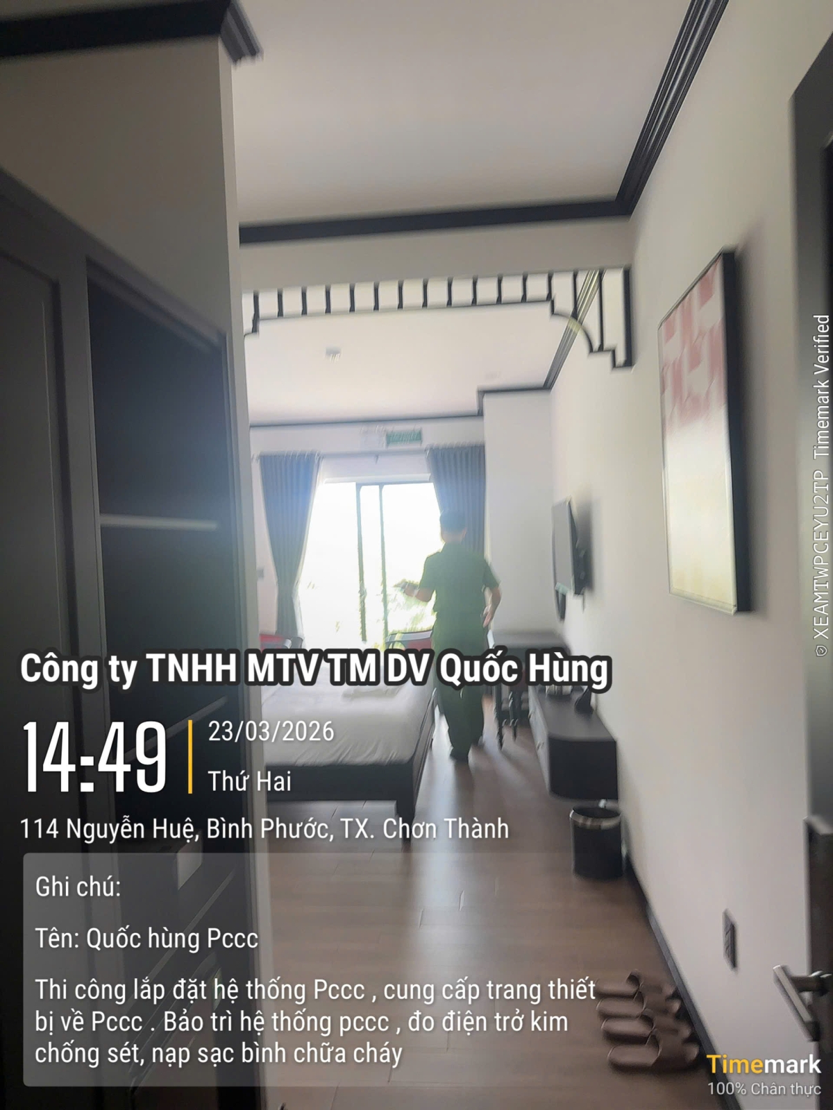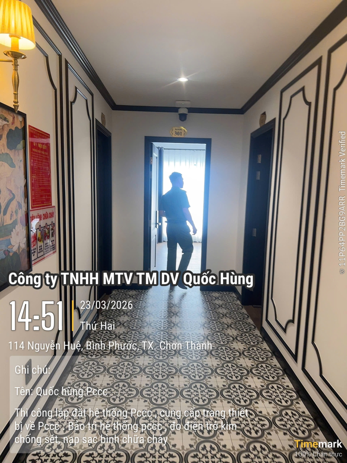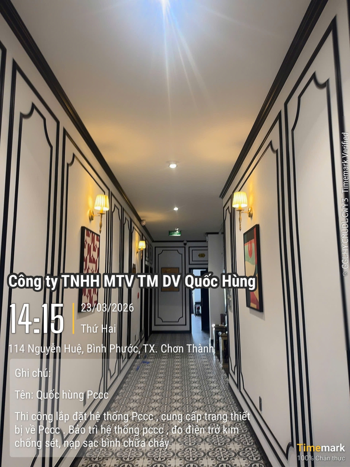 CÔNG TY TNHH MỘT THÀNH VIÊN THƯƠNG MẠI DỊCH VỤ QUỐC HÙNG đã hoàn tất thi công, lắp đặt và nghiệm thu hệ thống phòng cháy chữa cháy (PCCC) tại Trọng Phát Hotel – Chơn Thành, Bình Phước, đảm bảo đúng tiêu chuẩn kỹ thuật và quy định pháp luật hiện hành.