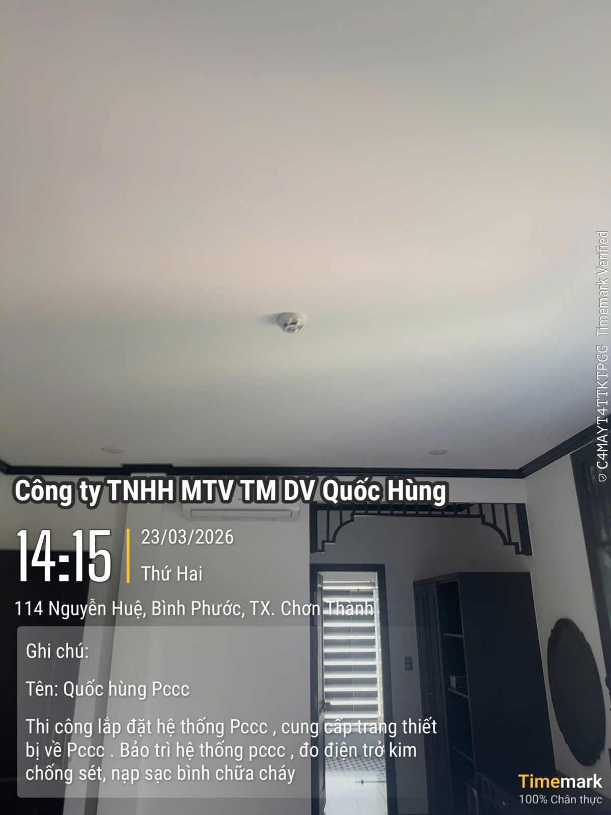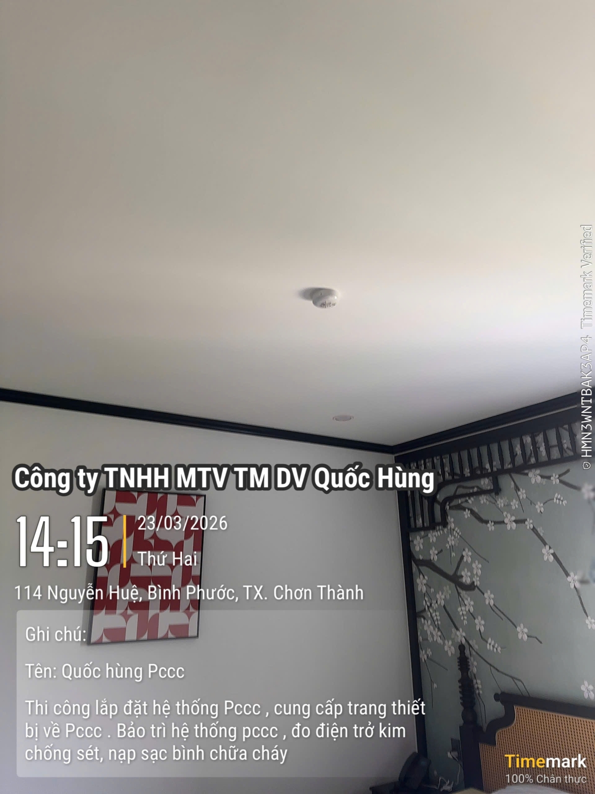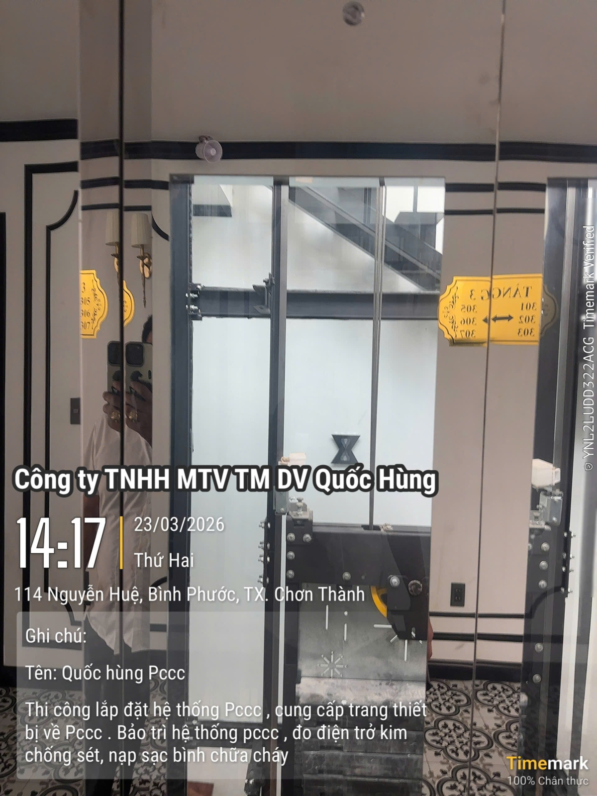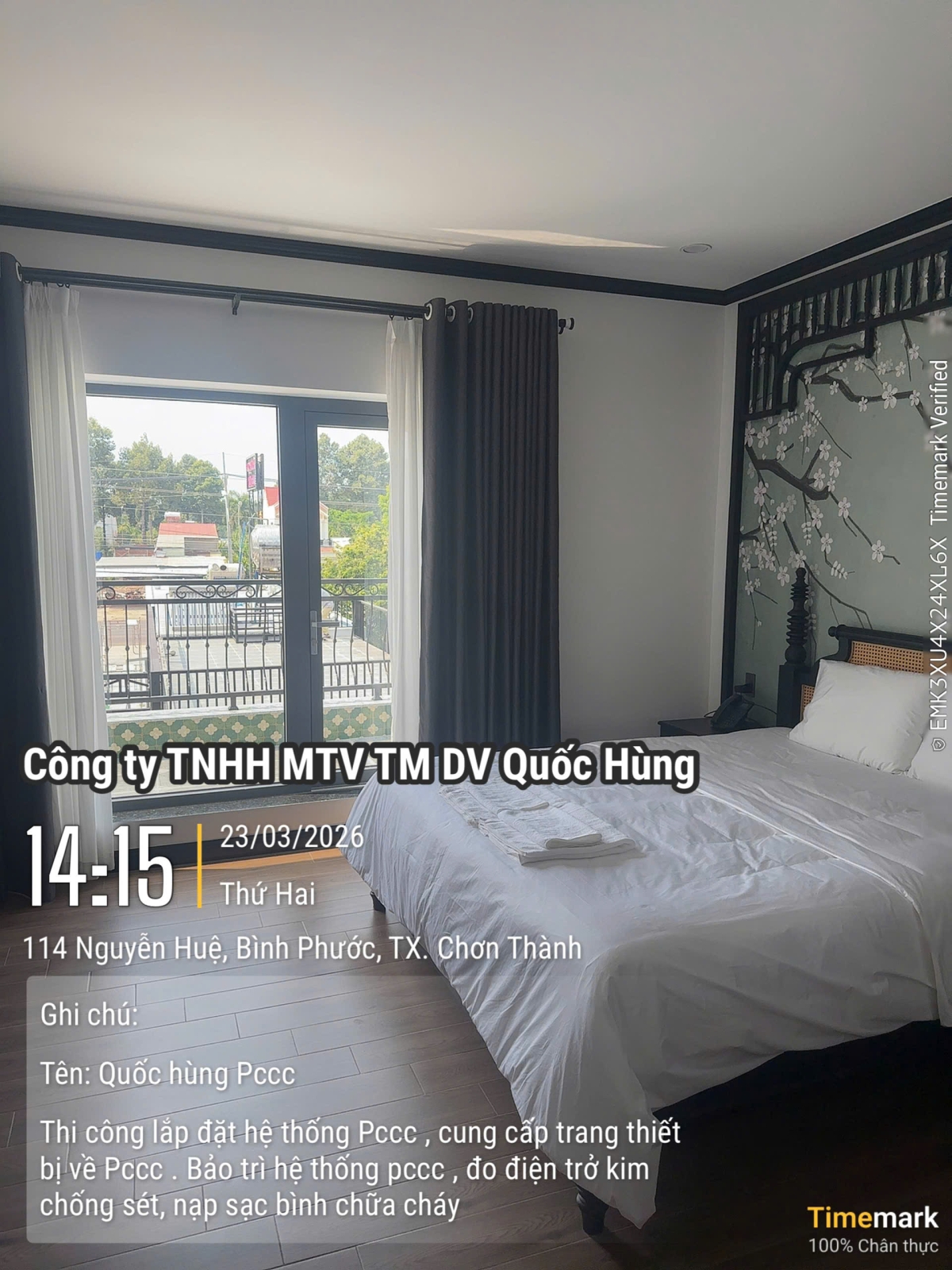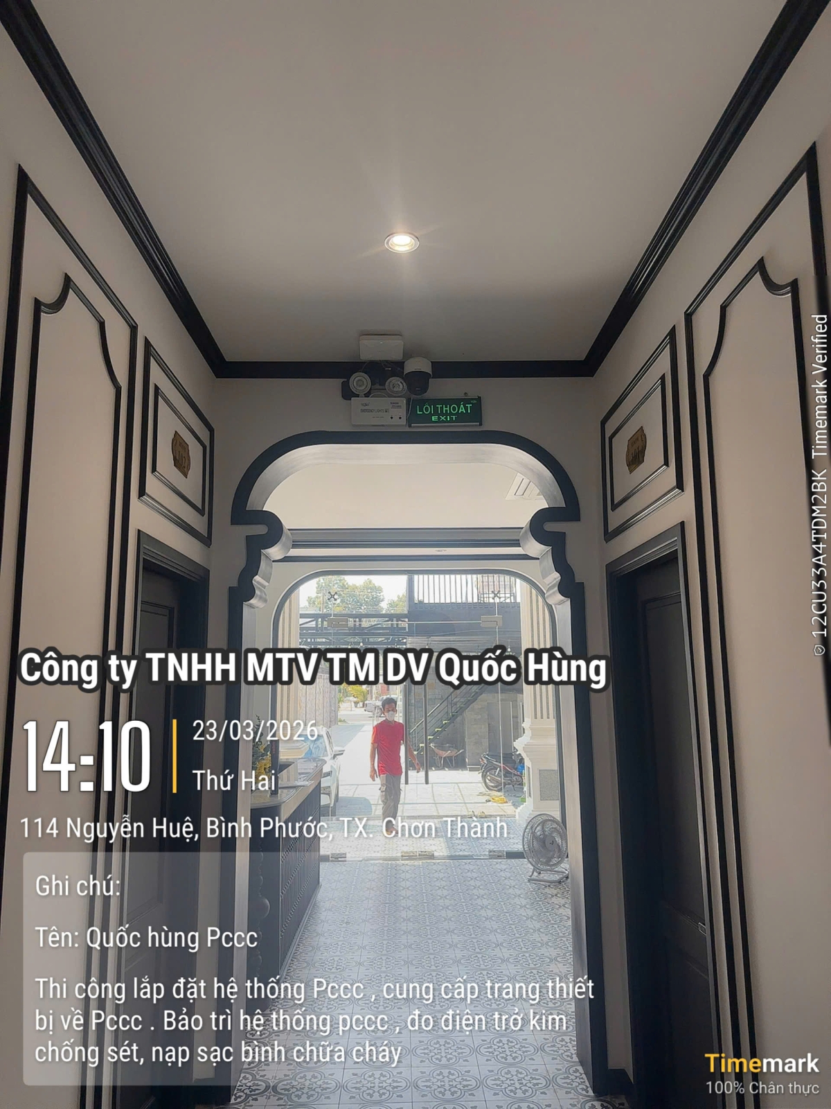 CÔNG TY TNHH MỘT THÀNH VIÊN THƯƠNG MẠI DỊCH VỤ QUỐC HÙNG đã hoàn tất thi công, lắp đặt và nghiệm thu hệ thống phòng cháy chữa cháy (PCCC) tại Trọng Phát Hotel – Chơn Thành, Bình Phước, đảm bảo đúng tiêu chuẩn kỹ thuật và quy định pháp luật hiện hành.