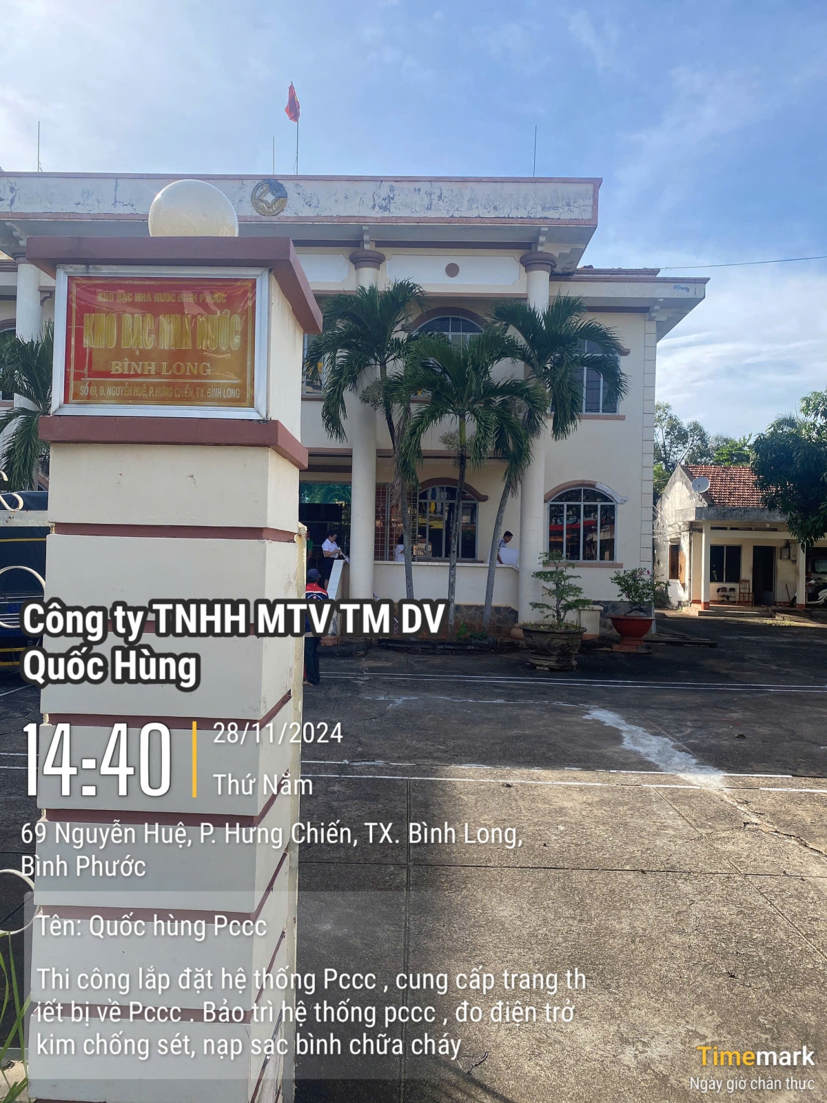Thi công hệ thống PCCC cho kho bạc Thị xã Bình Long Long tỉnh Bình Phước