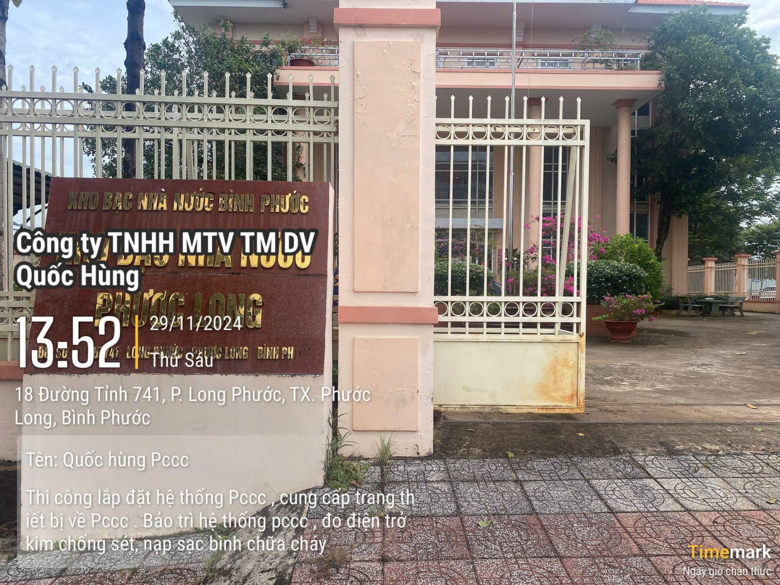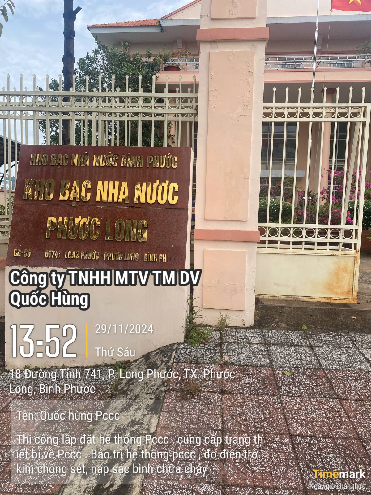 Thi công hệ thống PCCC cho kho bạc Thị xã Phước Long tỉnh Bình Phước